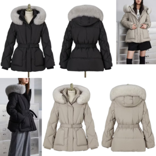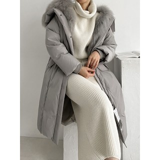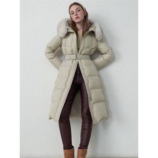 구스 850FP 리얼 폭스 벨트 롱 패딩