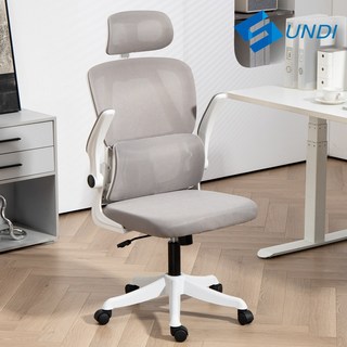 SUNDI 고급 통기성 컴퓨터 의자 편안한 등받이 허리 보호 게이밍 의자, 화이트회색