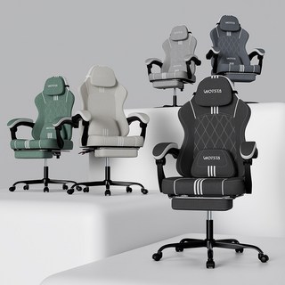 WOTSTA 린넨 게이밍의자 네츄럴 컬러 발받침 승강가능, 민트그린