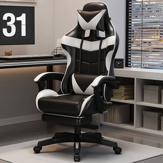 발받침 포함 각도 조절 가능 게이밍의자 회전 컴포트 컴퓨터 의자 승강 가능한 사무실 의자, 흰색+블랙(발받침 없음)