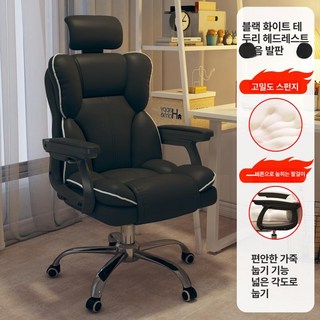 벤트론스 게이밍 의자 각도 높이 조절 가능 컴퓨터 사무용 의자, 블랙+화이트