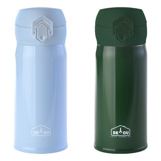 디유 비비드 2중 진공 원터치 보온병 2종 세트, 스카이 + 아이보리, 350ml, 1세트