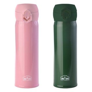 디유 비비드 2중 진공 원터치 보온병 2종 세트, 핑크 + 카키, 500ml, 1세트