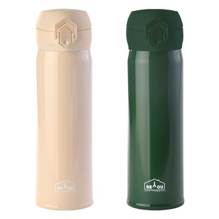 디유 비비드 2중 진공 원터치 보온병, 아이보리 + 카키, 500ml, 1세트