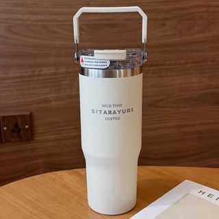 에코럭키 스윙핸들 진공 텀블러 600ml 보온 보냉 걸이형 손잡이, 스윙핸들 텀블러-아이보리, 900ml, 1개