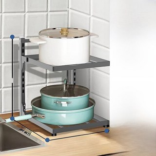 조절 가능한 주방 싱크대 냄비 홀더 다층 다기능 주방 수납 선반 스토브 캐비닛 디유, 2층