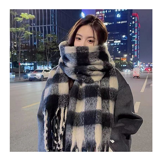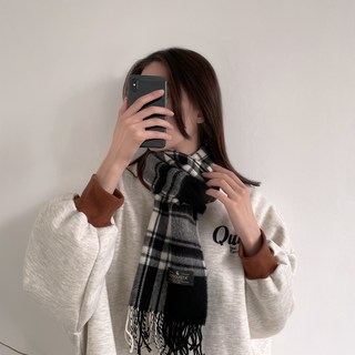 허블리 부드러운 겨울 목도리 울 체크 머플러