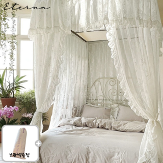 에테르나 침대 커튼 레이스 캐노피 커튼봉 포함, 화이트
