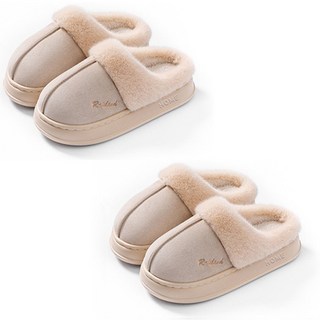 1+1 R-LAND Cashmere Slippers 방한 겨울 따뜻한 털 퍼슬리퍼 털신발 거실화 실내화 사무실, 1세트, 베이지(여성용)