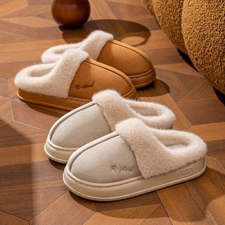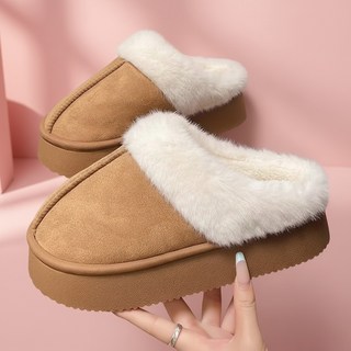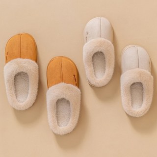 캐주얼 편안한 퍼 슬리퍼 미끄럼방지 방수 보온 신발 가을겨울 단색 실내 방한화 남녀공용