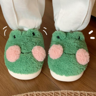 커플 개구리 털 실내화 귀여운 뽀글이 극세사 방한 겨울 거실화 슬리퍼, 1개, 슬리퍼형