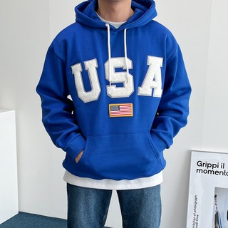 베럴댄나우 남녀공용 기모 USA 자수 오버핏 후드티