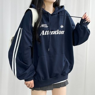 [핏보장] 어텐션 라인 후드티 3컬러 루즈핏 레터링 트랙