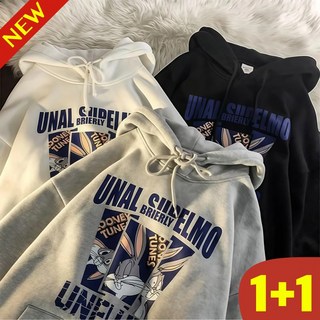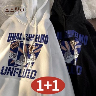 95kg까지 1+1 남녀공용 캐릭터 프린트 오버핏 후드티 티셔츠 여성 남자 기모 귀여운 토끼 커플 학생복 ins 루즈핏 베이직 큰옷 여성의류 3xl 캐주얼 여자 후드 맨투맨 긴팔티