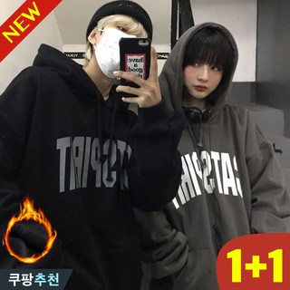 오스틱니 [날씬해보이는]1+1 빅사이즈 후드티 여성 가을 겨울 편한 간절기 캐릭터 레터링 프린트 심플 커플 루즈핏 제인드 BF 홀리데이 캐주얼 패션 데일리 덧대 맨투맨 상의
