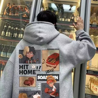 SMALELCC 가을 겨울 남자 후드티 빅사이즈 루즈핏 맨투맨 미국식 캐릭터 프린팅 후드티 기모/베이직
