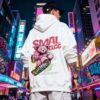 SMALELCC 가을 겨울 남자 후드티 빅사이즈 루즈핏 맨투맨 미국식 프린팅 캐릭터 후드티 기모/베이직