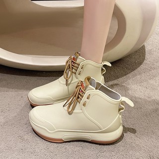 YANGTA 레인부츠 남성 여성 남녀공용 가벼 레이스업 방수 신발 커플 장화 미끄럼 방지 고무신발 패션 우천용