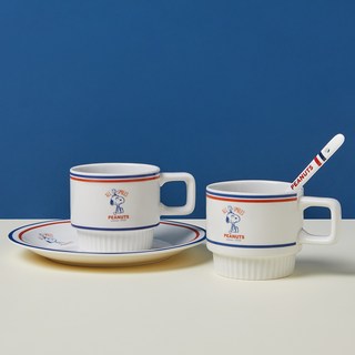보프렌즈 스누피 빈티지 코펠 머그컵 2p + 플레이트 + 티스푼 세트, 혼합색상, 1세트