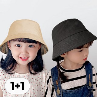 1+1 아동용 버킷햇 세트 어린이 벙거지 모자 체크 벙커햇 키즈 썬캡 아동 썬햇 여아 남아