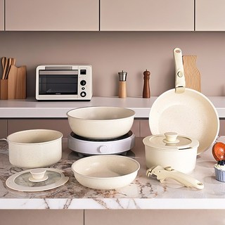 냄비 도구 식품 등급 코팅 냄비 세트 주방용 냄비 탈부착 손잡이 5피스, 1세트, 프라이팬26cm+프라이팬20cm+탕솥18cm, 크림