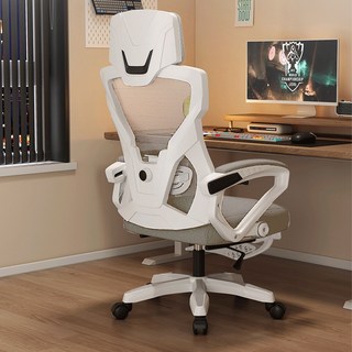 사무실용 인체공학설계 메쉬의자 조절 승강가능 학생 게이밍 업그레이드 컴퓨터 라이브 방송용 의자 발받침대, 화이트