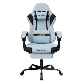WOTSTA 멀티 컬러 게이밍 체어 린넨 회전 컴포트 발받침, 블루블랙