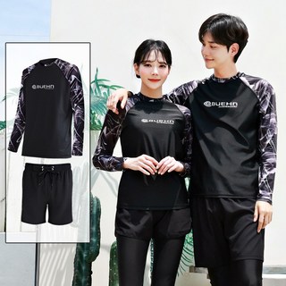 라틱 남자 여자 래쉬가드 상하의 세트 수영복 루즈핏 비치웨어, 블랙