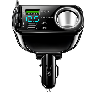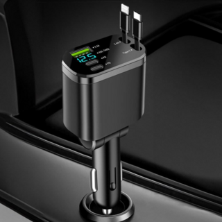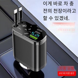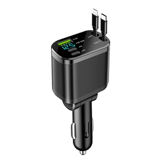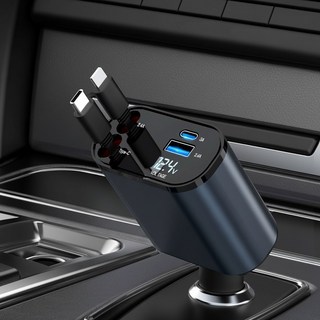 LareinaT 4in1 차량용 충전기 TYPE-C+애플 시거잭 고속 충전기 릴타입 차량용 고속 충전기, 블랙