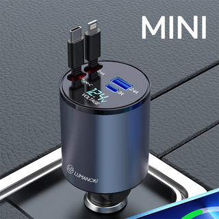 LUMANOKI 100W 4구 릴타입 차량용 고속충전기, 미니 C-Type+아이폰