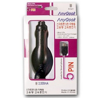 애니쿡 스마트폰 5핀 차량용 초고속 충전기 자동차용품 휴대폰 str+551az