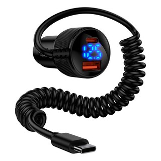 구스페리 38w 2포트 차량용 시거잭 고속 충전기 c타입 + usb타입, 블랙