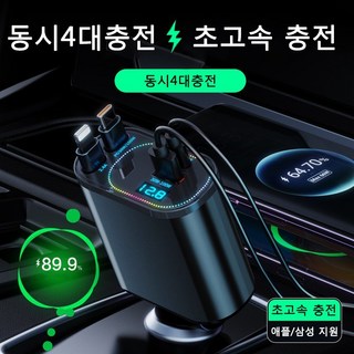 BIKASU 동시4대충전 고속충전기 차량용 충전기 초고속충전기 고속 차량용 충전기, type-C충전선+애플충전선