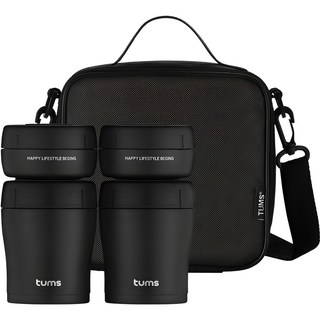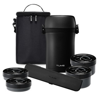 텀스 대용량 일체형 보온 도시락 + 수저 + 가방 세트, 블랙, 1세트