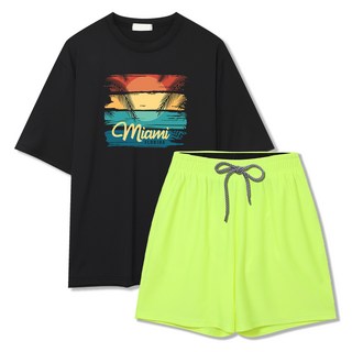 일루소 마이애미 오버핏 반팔 래쉬가드 + 4부 스판 비치 팬츠 세트