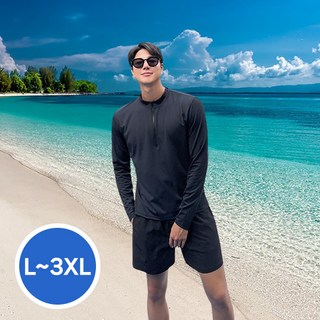 오로라선데이 올블랙 래쉬가드 남녀 루즈핏 빅사이즈 무지 체형커버 비치웨어 남성 3종 여성 5종 세트, 남성(4XL)