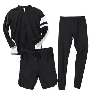 라틱 남자 여자 래쉬가드 상하의 세트 수영복 루즈핏 비치웨어, 블랙