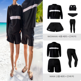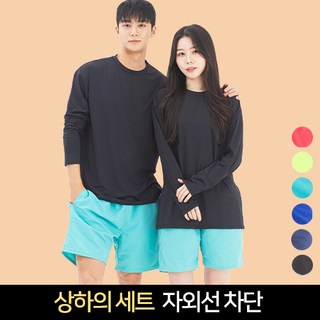 스윔슈트 남자 여자 커플 래쉬가드 세미 오버핏 반집업 루즈핏 체형보정 빅사이즈 상하의 세트