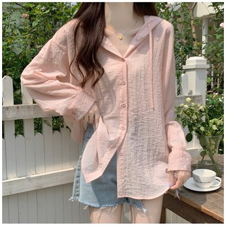 간절기 여름 래쉬가드 후드셔츠 루즈핏 여성 얇은 커버