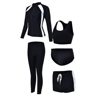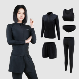 오로라선데이 여성 올블랙 집업 래쉬가드 5종 세트 체형커버 수영복, XL