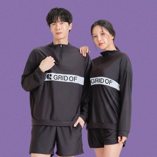그리드오브 커플 레터링 긴팔 반집업 래쉬가드 세트 빅사이즈포함