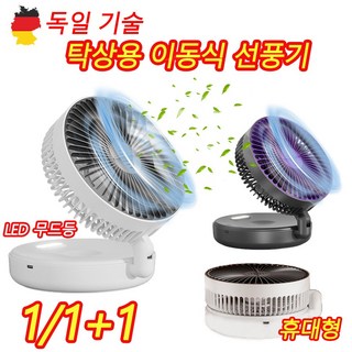 [독일 기술] 1/1+1 강력 무선 선풍기 충전 휴대용 접이식 서큘레이터 LED 조명 탁상용 선풍기, 그레이, 2개