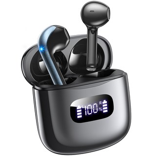 YINTEE 무선 블루투스 이어폰 커널형 ENC 노이즈 캔슬링 고음질 C타입 LED 이어폰, 블랙-T9