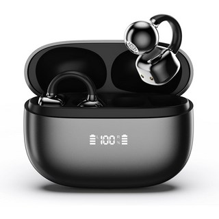 BOBOJOJO 미니 편안한 오픈형 무선 블루투스 이어폰, 블랙