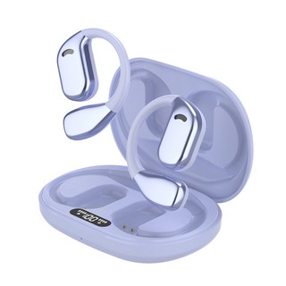 THOUSTA 귀걸이형 무선 블루투스 이어폰 오픈형 공기전도 고음질 노이즈 캔슬링 운동 게임용, 파스텔퍼플