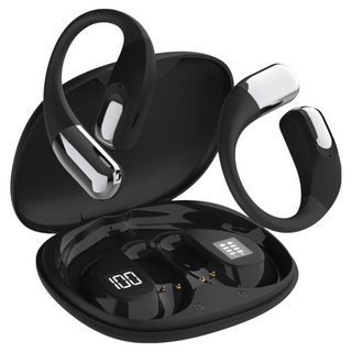 OMIIYA 귀걸이형 노이즈캔슬링 무선 블루투스 이어폰 오픈형 고음질, 블랙, E12
