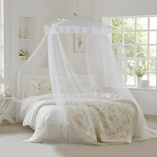 무타공 원형 캐노피 모기장 천장형 걸이식 싱글도어 프린세스 모기장, 화이트