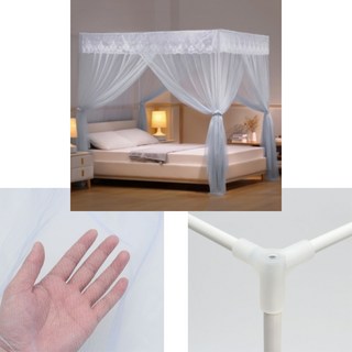 리본 사각 캐노피 침대 모기장 + 설치 부품, 화이트