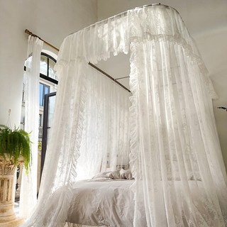 침대 커튼 캐노피 모기장 화이트레이스스테인리스지지대 스탠드 스타일 m침대xxcm 유럽풍, 1 5미터 침대 [150 200cm], 3 207 레일 라이트 커피 홀더 커튼 미포함