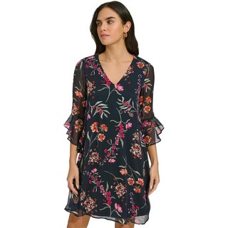 켈빈클라인 여성 블랙 플로럴 쉬폰 드레스 벨 슬리브 사이즈 16 4964721